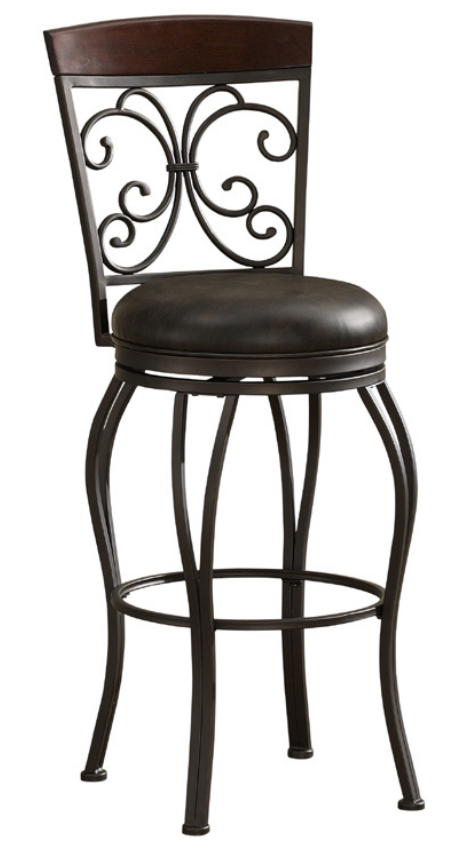 Finished in pepper with a comfortable tobacco bonded leather cushion, this metal 360° full-bearing swivel stool also includes adjustable leg levelers.Read More