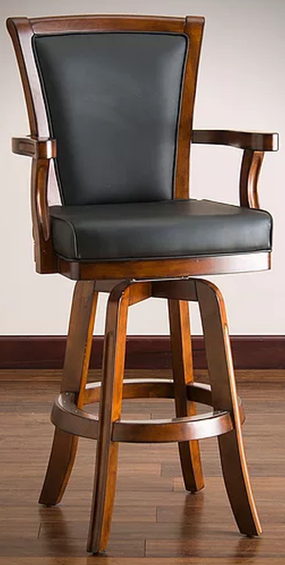 Finished in suede with a 4" black bonded leather cushion, the Auburn stool come as an assembled base and seat. It is built using mortise and tenon construction principles and features a 360° full-bearing swivel, webbed seating, and adjustable leg levelers.Read More