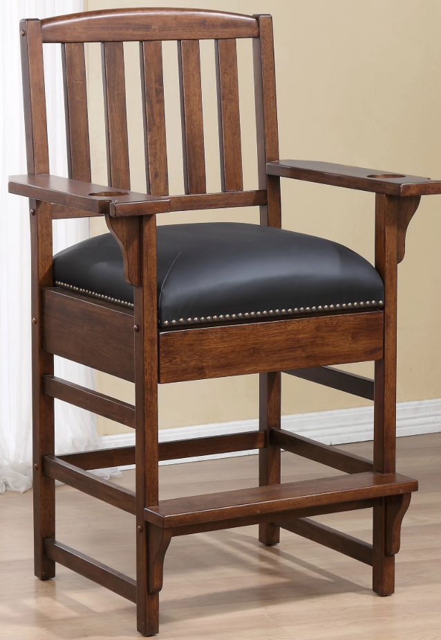 Crafted to reflect its name, keep your eyes on the action with this stately viewing chair. The King Chair touts a wide and slatted back, armrests complete with cup-holders and notches for billiard cues, and a hidden drawer for storage.