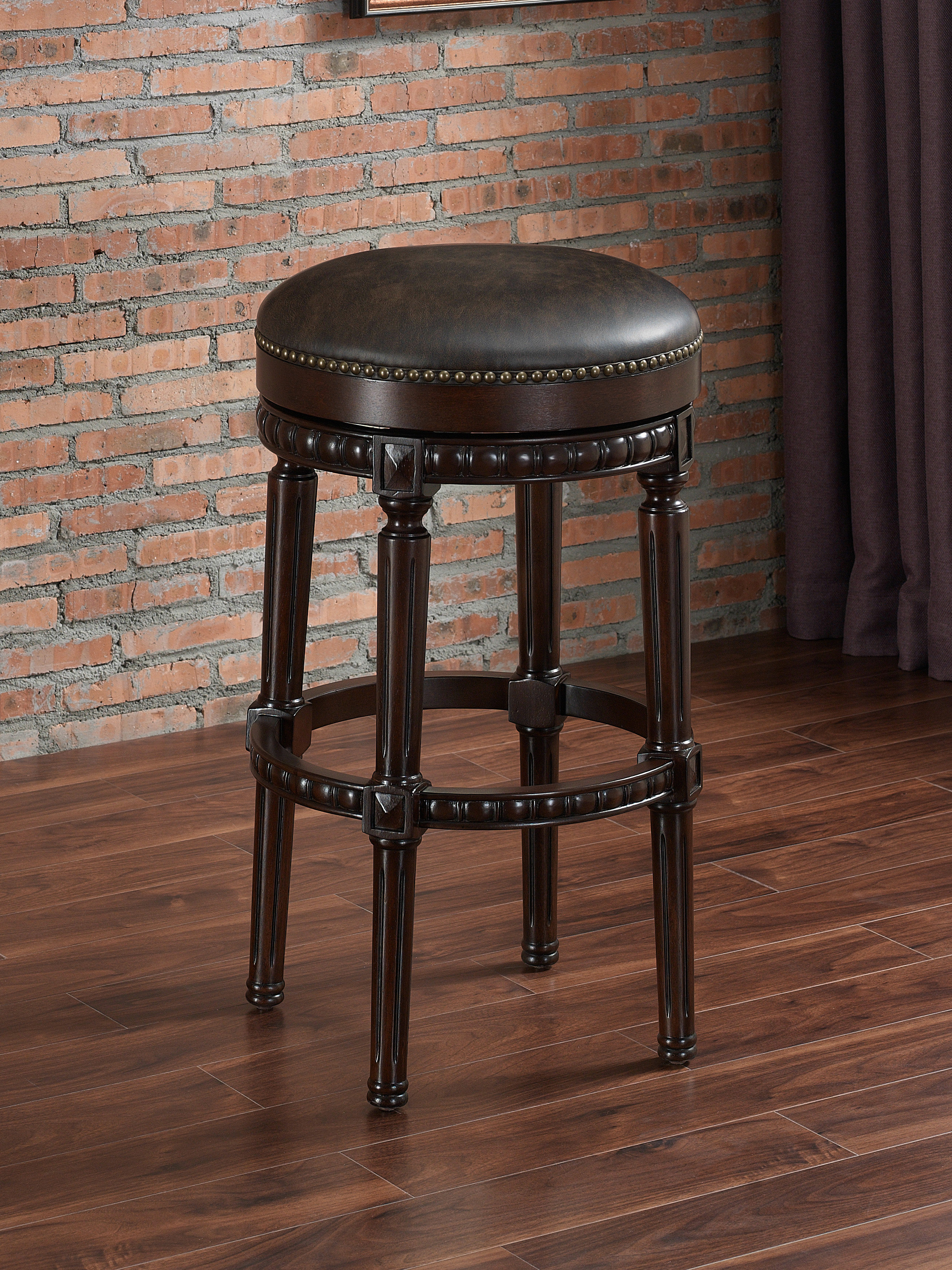 Finished in Navajo with tobacco bonded leather, it features a full-bearing 360° swivel and is built using mortise and tenon construction principles. It also features adjustable leg levelers, and a 3" bonded leather cushion.Read More