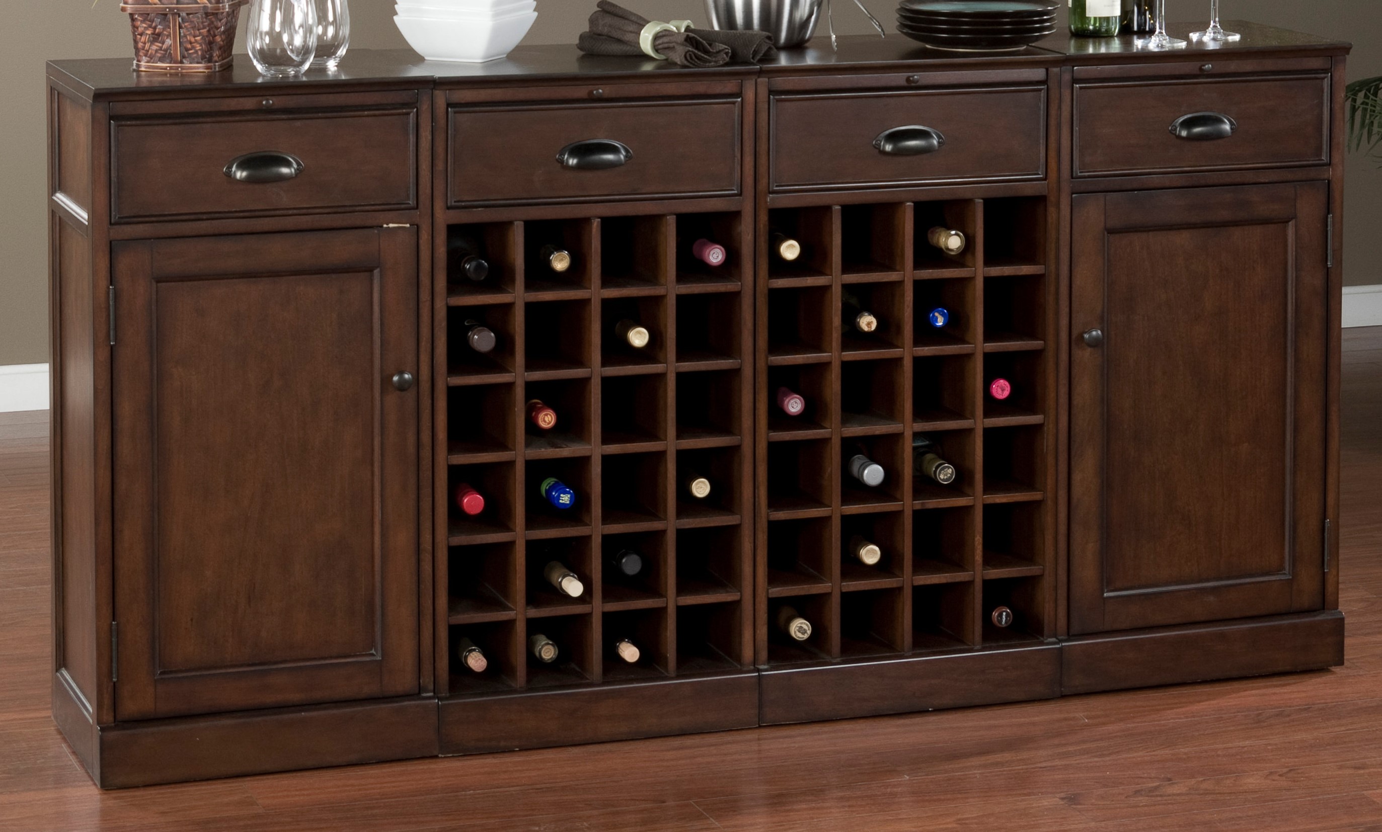 The Natalia 4-Piece Modular Set is an excellent piece for any room. If holding up to 48 bottles of wine isn't enough, the Natalia also has additional shelving units for other entertaining goodies. The pieces can be left separately or latched together in the back of the units. Four pull-out drawers and four pull-out work areas make this an extremely versatile piece when all is said and done.