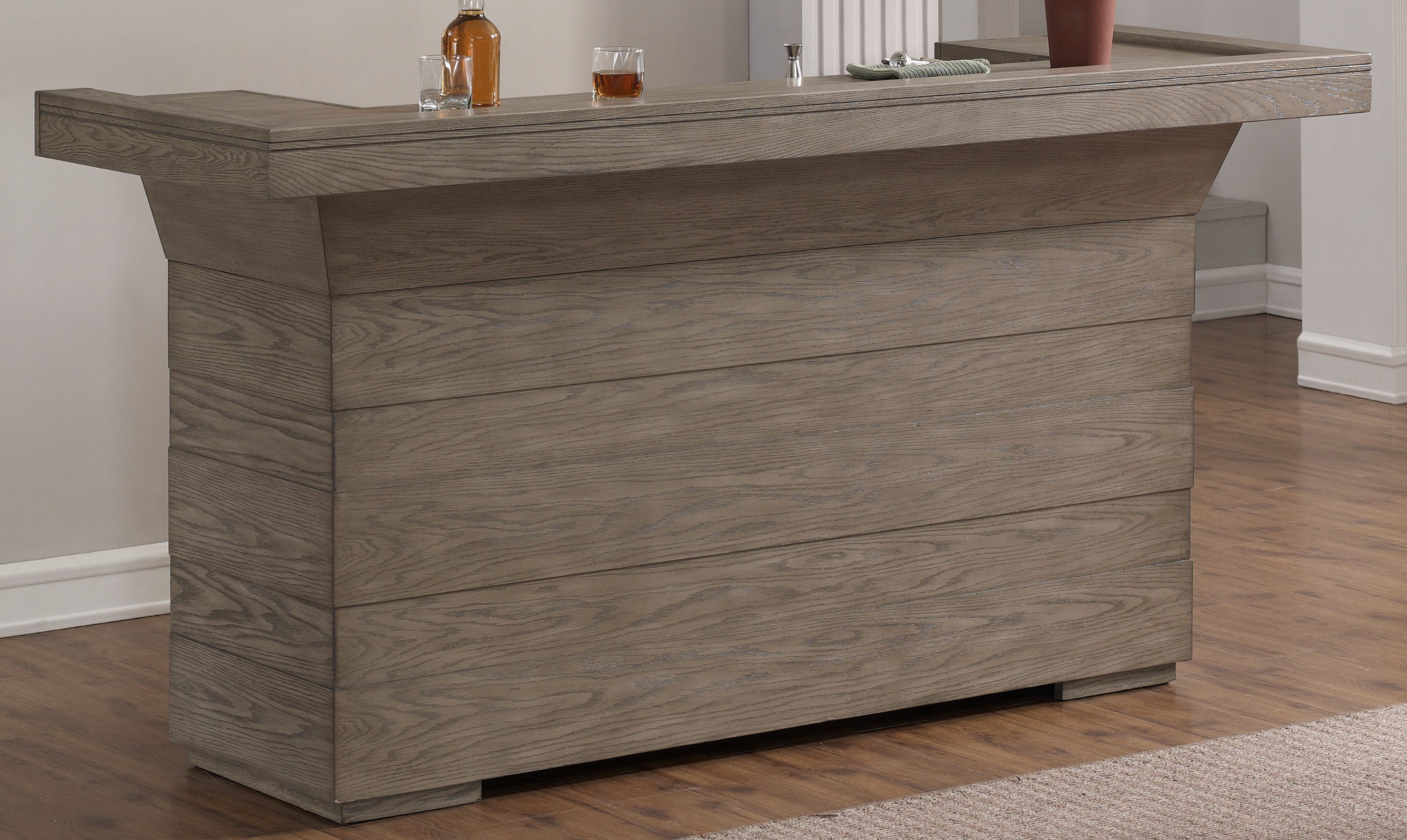 The Picante Bar is Finished in Sand and made of Oak and Oak Veneers. This stylish home bar features a removable Ice Bucket, Glass Stemware Holders, and plenty of Storage Shelving. With an Oak Veneer Bar Top, a Stone cutting Surface, it's sure to be appreciated for its form and beauty. It also features Locking Cabinets for added safety, and convenient Easy-Glide Storage Drawers.