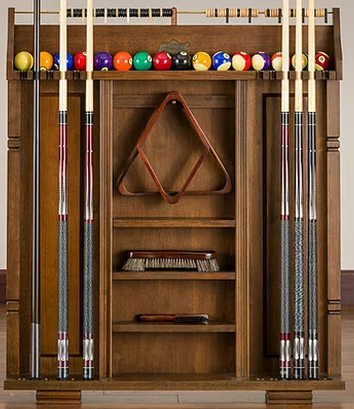 This rack is truly unmatched; ample storage room for cues, balls, racks, and other accessories while also housing a unique scoring system. All of this is combined with a classic and simplistic style that fit any room.