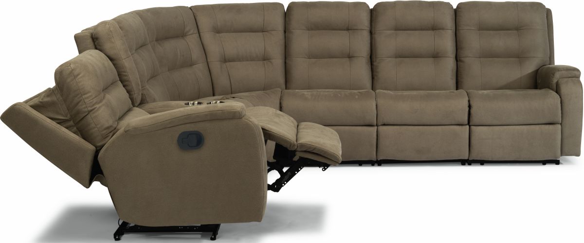 Gather the family together for movie night or the big game with the Arlo Reclining Sectional, in modular sections that can be arranged in an L-shape or straight configuration. Enjoy the convenience of a storage console that keeps remotes and beverages right where you need them. You'll all love the comfy pull-tufted, triple-divide back cushions which support your head, neck and lower back as you unwind.Read More