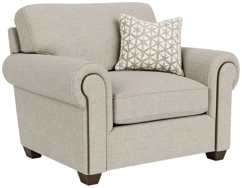 A unique wrap-around padded armrest on Carson's large-scale rolled arm is highlighted with pleats and welt cording. Optional nailhead trim tightly spaced lines the exposed arm fronts for a fun, visual effect. Relax into Carson's overstuffed seat and back cushions after a long day and feel the stress melt away.Read More