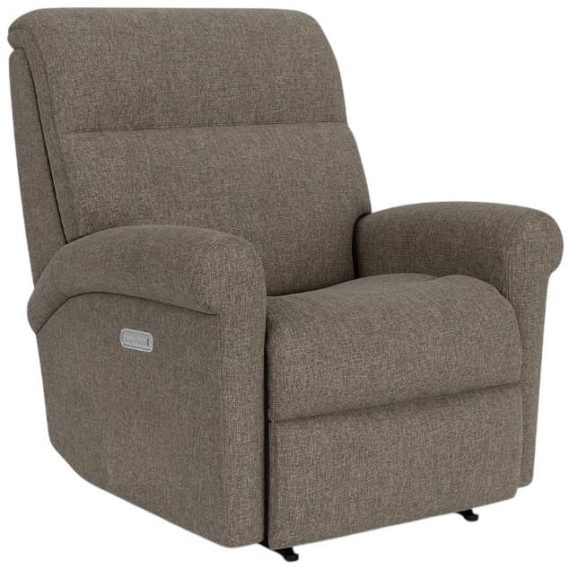 Recline like you mean it with the Davis fabric power rocking recliner with power headrest. Supple upholstery, push-button controls, and smoothing rocking and reclining brings comfort home.