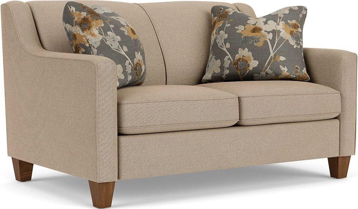Welt cording highlights Holly's silhouette from the bottom to the top of the outside arm and across the seat cushions. Tall, tapered wooden legs add visual height to Holly's structure and complement its modern inspiration. Thin, angled arms curve upward for a fun, stylish effect.Read More
