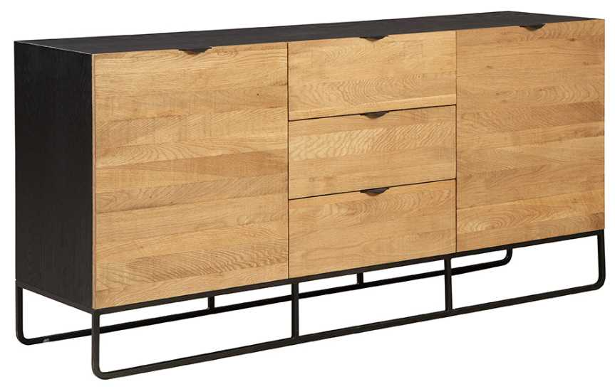 The Ariel Sideboard combines fun, modern design with practical storage. Featuring a sleek black wood frame, it boasts two cabinets with internal shelves for organization and three central drawers. The cabinet doors and drawer fronts showcase a light natural wood finish, creating a striking contrast.Read More