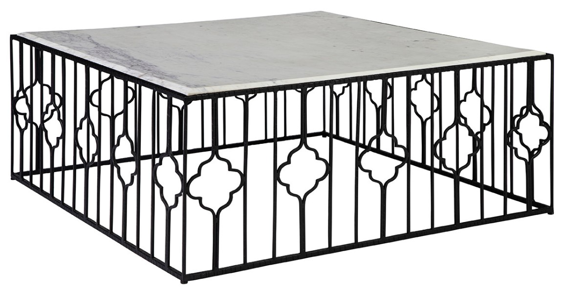 The table’s iron base stands as a testament to meticulous craft smanship, featuring intricate detailing and a decorative design that exudes elegance from every angle. Paired with a drop-in marble top boasting beveled edges, this cocktail table is a harmonious blend of strength, style, and sophistication.Read More