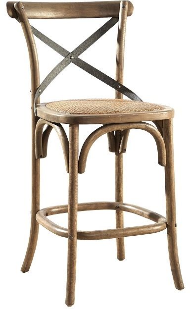 Steam bent and made of birch solids, this stool was inspired by our bestselling Bentwood bistro chairs The seat is padded with a woven rattan cover and has an aged iron cross back