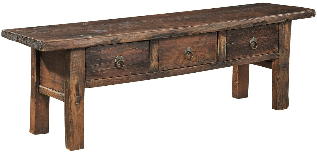 Collected from rustic villages, this antique "coffee bench" features sturdy construction and three working drawers. Because it is a "found" object, the size will vary, but the charm will not!Read More
