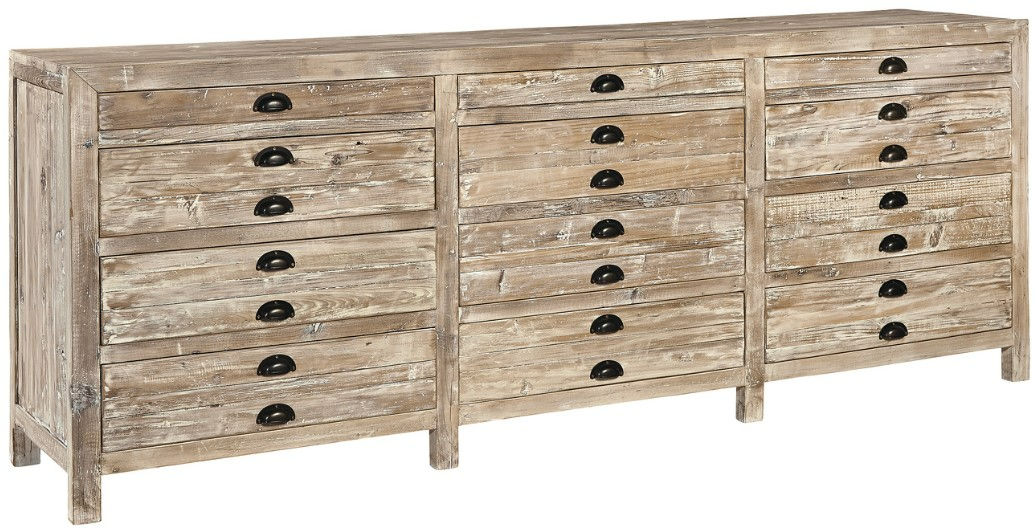 The Apothecary Chest showcases timeless elegance with its rich brown finish. Crafted from reclaimed elm wood, this oversized cabinet features vintage-style drawer pulls, adding character and charm to any space.Read More