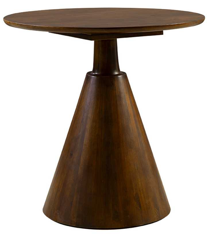 The Capitan's Pub Table combines simple modern design with timeless charm. Crafted from solid wood in a rich dark brown finish, the circular tabletop rests on an inverted cone-shaped base, offering a sleek and understated look.Read More