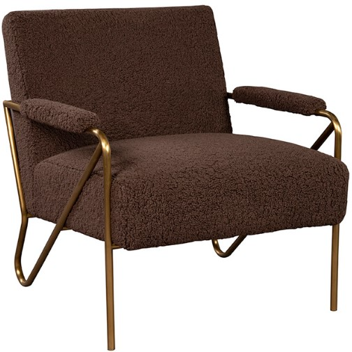 Cuddle up in this elegant teddy bear of a chair upholstered in a cozy chocolate performance boucle fabric. The metal frame is brushed with a warm gold finish which adds a touch of glamorous gleam to this sophisticated and comfortable chair.Read More