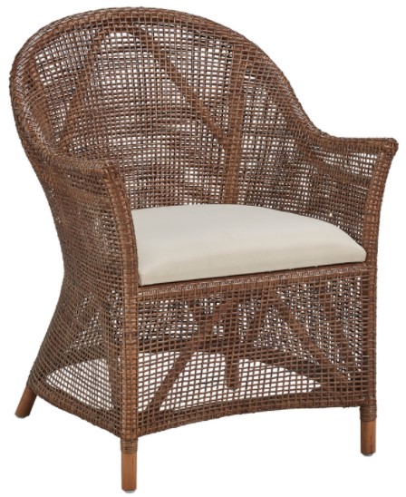 This rattan chair is sure to add textural interest to any room. The natural rattan frame features hand woven wicker weave, giving it a deceptively light appearance. Neutral upholstery contrasts nicely with the soft honey tones of the frame, but the seat is easily removed and recovered.Read More