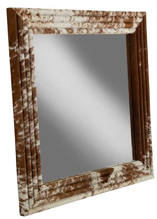 The Laverne Mirror offers the same unique charm and Western aesthetic as the Shirley Mirror but in a more compact 30x30 size. Its fluted wood frame is wrapped in hair-on-hide, with each piece showcasing warm brown and white patterns that vary naturally, making every mirror one of a kind.Read More