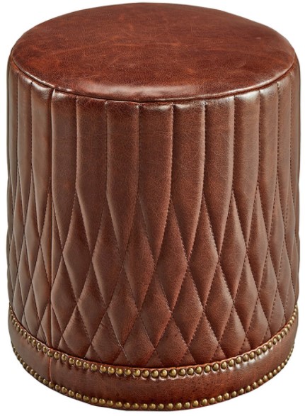 Unique diamond quilting and hand applied brass nail trim combine to create an air of vintage charm for this simple warm brown leather ottoman. Whether paired with a chair, or used alone for an extra seat, this small scaled ottoman is sure to be a welcome addition to any room.Read More