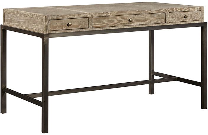 Utilizing solid oak and iron, this well-scaled desk is sized just right for today's homes The top has a soft natural finish, and three drawers to hold all your "Post-it" notes and stray pens