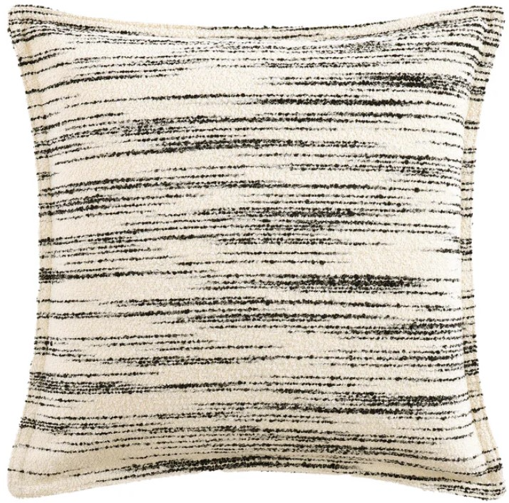 Embrace metropolitan sophistication with our Cosmo Throw Pillow. Delicate, artistic bouclé stripes in crisp ivory and deep black create a captivating visual rhythm—each thread meticulously space-dyed for perfect contrast. The subtly raised texture transforms your bedroom into a cosmopolitan retreat.Read More
