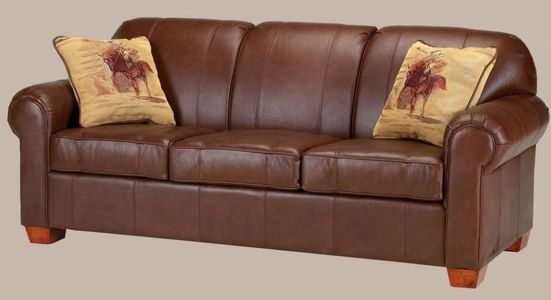 Accent your living area with McClain Leather Sofa. Brown upholstery gives this sofa an alluring appeal. With its beautiful design, this piece is sure to make a statement in your living room.Read More