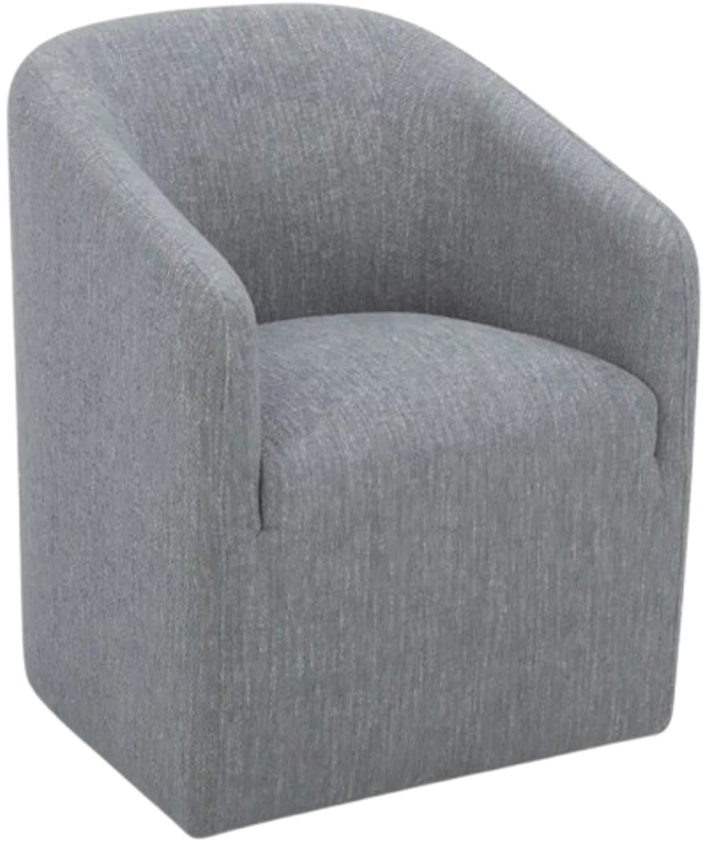 Looks polished and rolls with it. Sandy brings ease to the table. With a curved back, comfy seat, and smooth-rolling casters, it’s built for long meals, quick coffees, and anything in between. Fully wrapped in soft fabric upholstery, the silhouette feels seamless and considered--for diners who like to drift.Read More