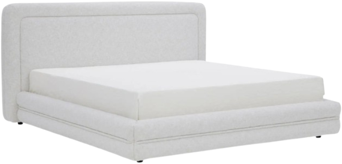 A headboard with a hug. The Tory King Bed pairs a generous headboard with rounded framing, softened by tufted detailing across the rails and footboard. Upholstered in pebble-toned polyester, it’s cushioned with high-density foam for comfort.Read More