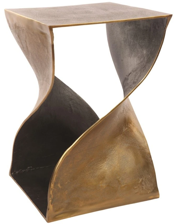 This twisted, two-tone accent table is cast in aluminum with a black, antique brass finish. Ideal as a stylish accent table, as an occasional stool, or a statement design for your botanical arrangements.Read More