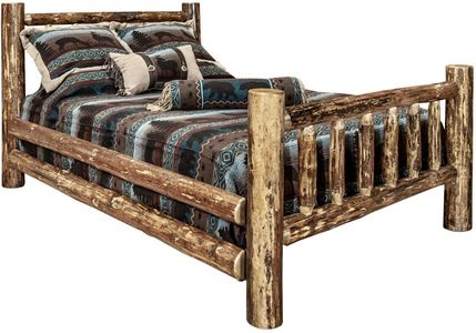 This classic, spindle style log bed has graced American homes throughout the land. A wonderful addition to any rustic style home or any home in need of some rustic style, this bed is as comfortable as it is charming. Handcrafted in Montana using solid, American grown wood, each piece is finished in the unique "Glacier Country" collection style reminiscent of the Grand Lodges of the Rockies, circa 1900. First we remove the outer bark but leave the inner, cambium layer intact for contrast and texture. Final steps include staining and lacquering in a professional eight step spraying process, making this piece as unique as it is functional. The mortise and tenon joinery system employed by our artisans has been used for millennia to join multiple components into a single, solid and strong assembly thus ensuring a truly heirloom quality piece that will last for generations to come. Two log side rails per side increase the strength and rigidity while simultaneously adding value. Some assembly required. 20-year limited warranty included at no additional charge. Hand crafted in Montana U.S.A. using genuine lodge pole pine!