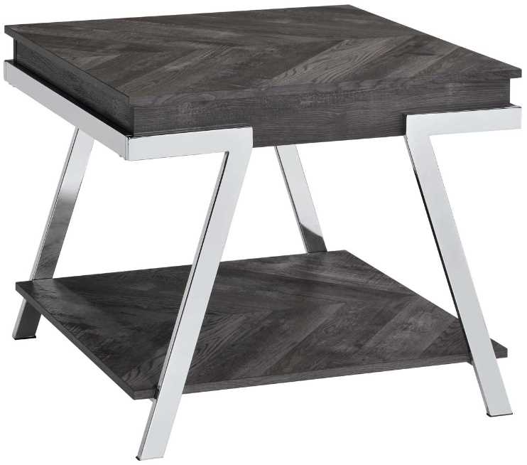 Contemporary style in a shadow gray finish, Roma offers aesthetic and practicality in one package. The End Table features Silvershield® tops that resists mars and scratches in a mixed media package with canted chrome leg that gives the table an aggressive modern profile.Read More